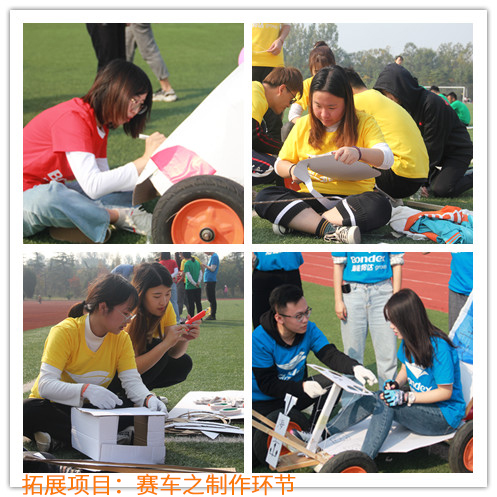 “挑战5分钟”、“盲人摸象”、“F1赛车”等项目考察的都是团队内部的沟通与配合。挑战开始前,各团队要头脑风暴商讨应对策略;项目进行中,小组成员们不断调整思路、修正方向,直奔任务目标;项目完成后,大家一块发现问题、总结经验,在任务中磨合,只为更好地完成下一个任务。不管挑战的结果是成功还是失败,小组成员间都互相鼓励,彼此支持,要为团队取得更好的成绩。在不断的挑战中,大家感受到在团队中只有充分沟通、互相配合,才能让团队不断向前,取得更好的成绩。